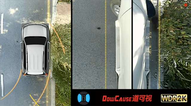 當(dāng)用戶倒車入庫時(shí),道可視360°全景中的通過“倒車影像”+“精準(zhǔn)輔助線”的方式,精準(zhǔn)計(jì)算出行車軌跡,顯示車輛泊車時(shí)車身所經(jīng)過的位置,幫助司機(jī)準(zhǔn)確入庫,小白也能一步到位。